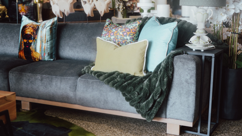 The interplay of textures - from the fluffy throw to the subtly patterned accents - adds depth and tactile richness, while the pops of vibrant colour bring energy without overwhelming the room. The overall effect is effortlessly refined: a lounge that feels luxurious, artfully styled, and ready to welcome you in.