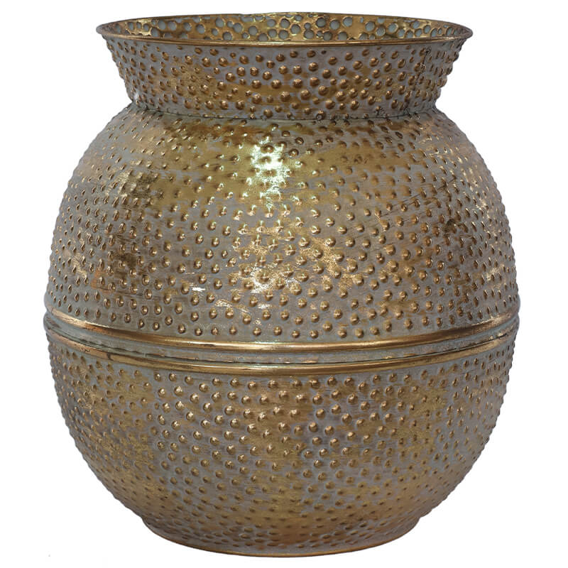 Elevate your décor with this sophisticated Dotted Gold Metal Vase, standing 31 cm tall. Its elegant gold finish and delicate dotted texture add a refined touch to any space. Crafted from durable metal, it offers lasting beauty and requires only gentle dusting with a soft dry cloth to maintain its shine. Perfect for showcasing your favourite blooms or as a standalone statement piece.