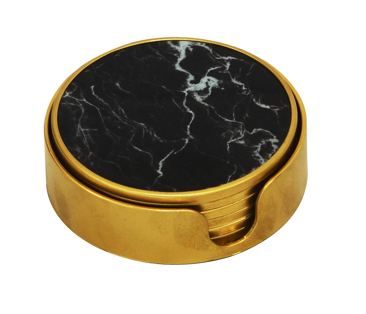 GLASS COASTER MARBLE BLACK S/6