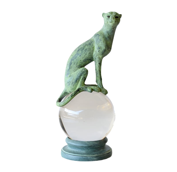 Add a splash of wild charm to your space with this playful green leopard perched atop a sparkling crystal ball. Standing 28cm tall and 12cm wide, it’s the perfect quirky accent to spark conversation and brighten any room.