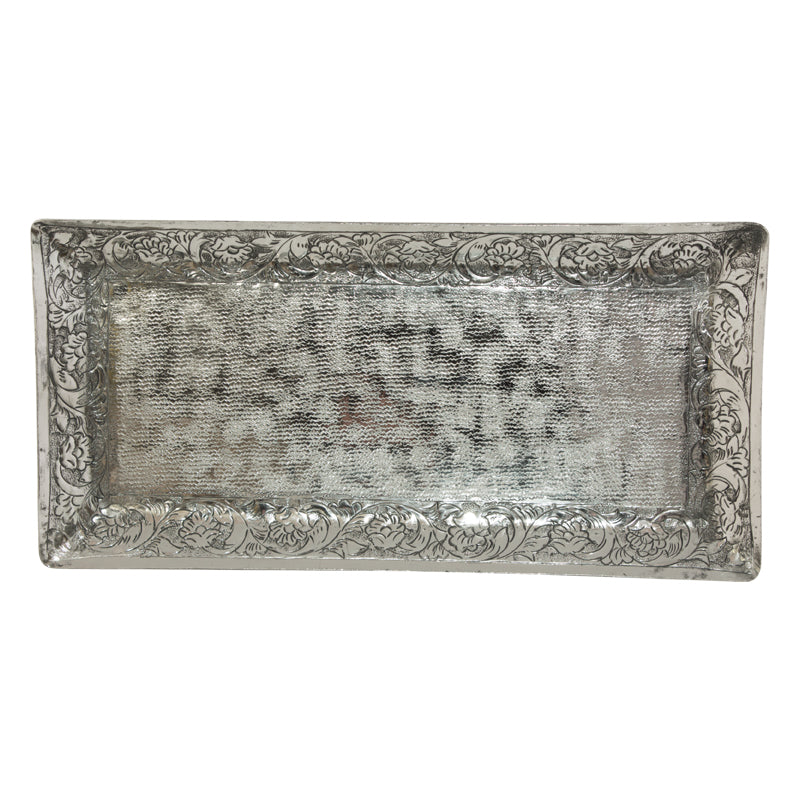 MOROCCAN RECT PLATE SILVER 40X20CM