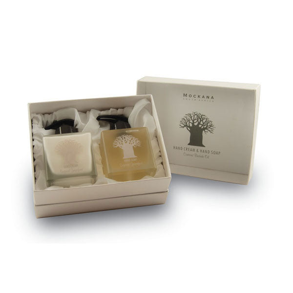 Hand Cream and Hand Wash with Baobab Oil packed in an upmarket silk lined box