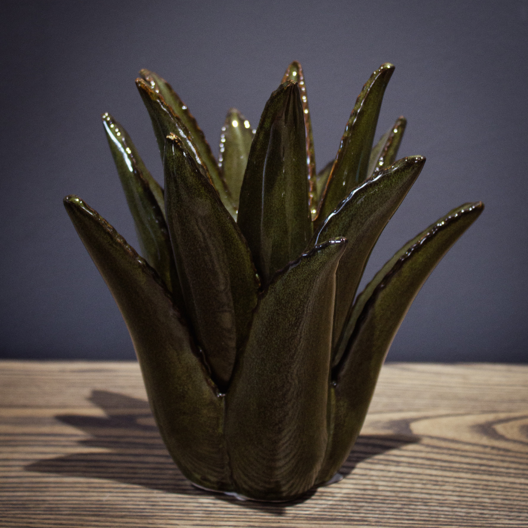 Y CERAMIC SPIKED ALOE GREEN SMALL